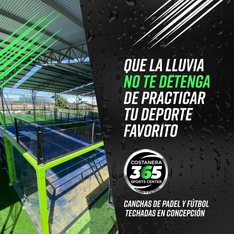 QUE LA LLUVIA NO TE DETENGA DE PRACTICAR TU DEPORTE FAVORITO 18-02-2021 CANCHAS TECHADAS ☔️ DE PÁDEL Y FÚTBOL EN CONCEPCIÓN No te quedes sin jugar🎾⚽️en costanera todas nuestras canchas incluidas la de futbolito se encuentran bajo techo 💪🏼😎🤟🏼